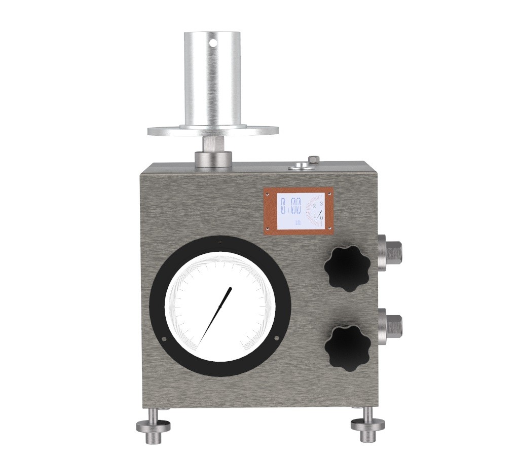 一體化結(jié)構(gòu)設計,方便野外使用。活塞單元、壓力容腔、液/液分離器(對于氣體檢漏為氣/液分離器)、精密壓力表(數(shù)字壓力表可選)、螺旋調(diào)壓泵、壓力傳感器、位移傳感器、溫度傳感器和所有閥門均安裝在一個精加工的鋼質(zhì)金屬機殼內(nèi)。儀器帶有四個調(diào)平腳,用于儀器的調(diào)平。